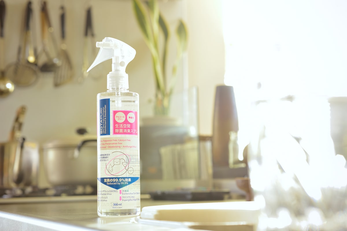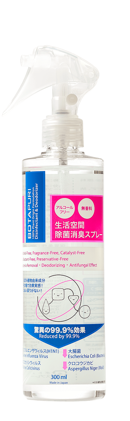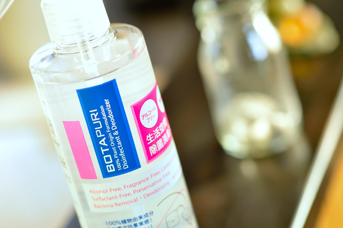 ボタピュリは食品素材を発酵したものを原料としており、化学薬品や界面活性剤、防腐剤は一切使用しないため、お子様やペットが口にしても安全です。空間、物、人、ペット等、幅広い用途にお使いいただけます。